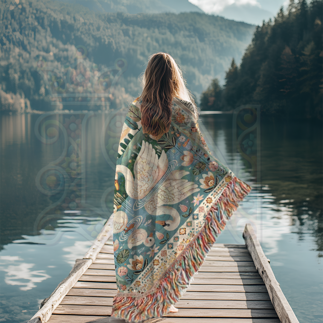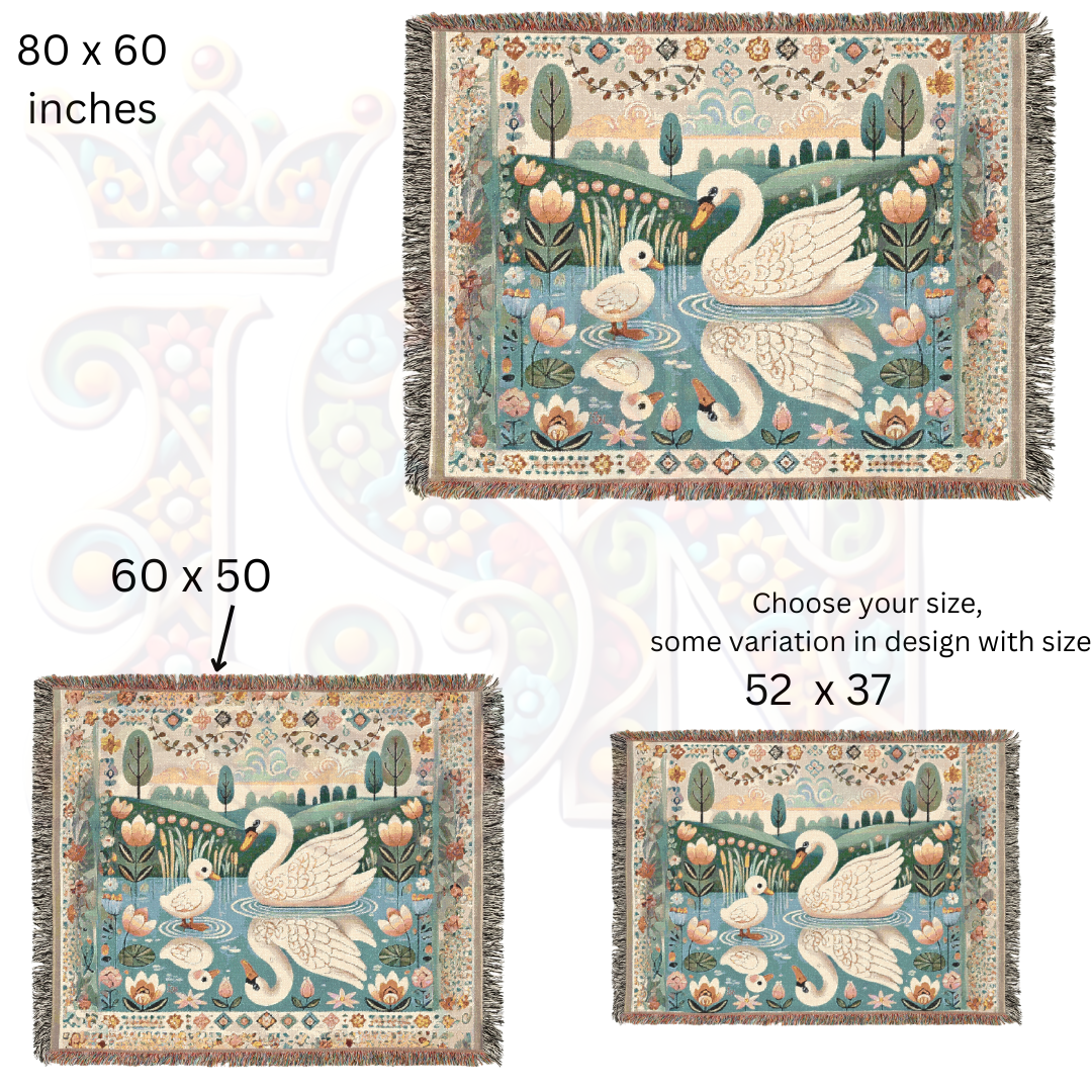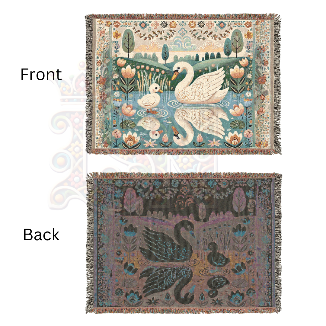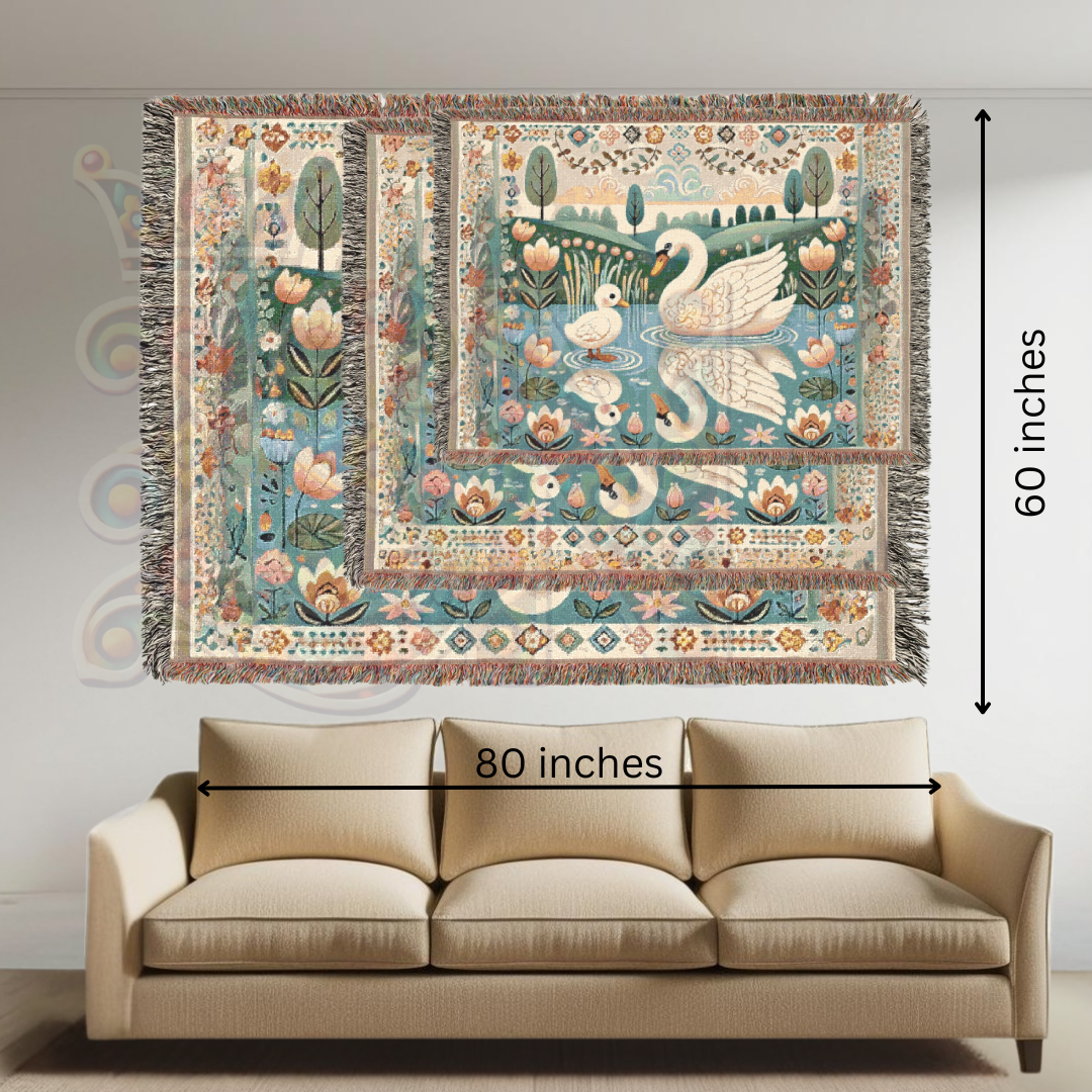 Enchanting Swan & Duckling Woven Throw Blanket – Nature-Inspired, Folk Art-Inspired Cozy Home Décor