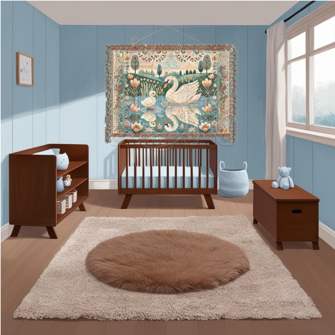 This beautifully crafted blanket is perfect for nature lovers, fairy-tale dreamers, and those who adore timeless artistry in home décor. Whether draped over your sofa or used as a cozy companion for reading nooks, it adds a magical touch to your surroundings. Designed for comfort and style, this piece celebrates the elegance of swans and the purity of nature, making it a cherished addition to any cottagecore or folk-inspired home. 🦢✨