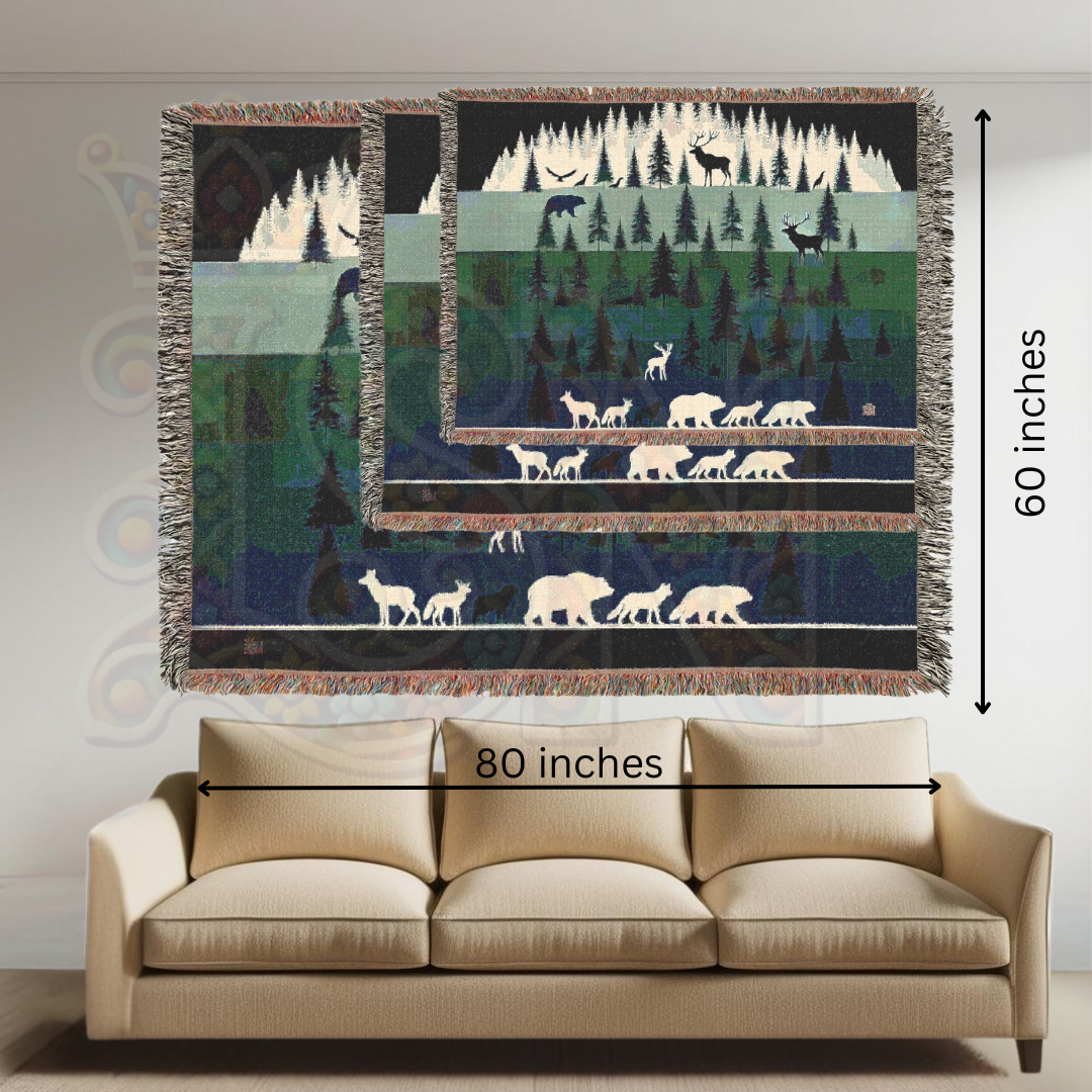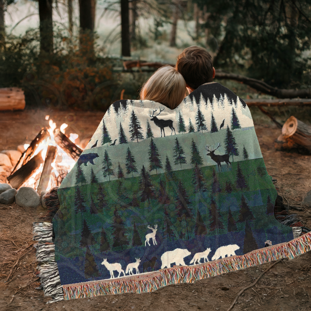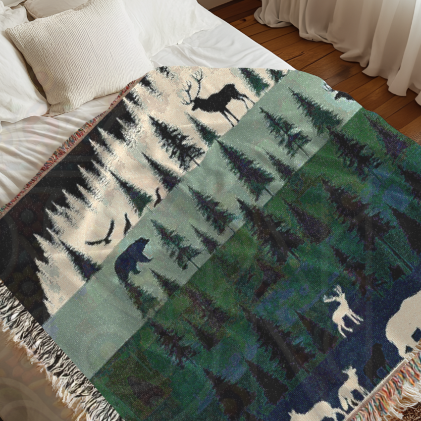 Ideal for camping lovers, outdoor enthusiasts, and rustic home decorators, this blanket can be used as a sofa throw, bedspread, or wall hanging. Whether you're curled up by the fire, decorating a lodge, or gifting a nature lover in your life, this woven masterpiece brings the wild beauty of the forest into your home. 🏕️✨