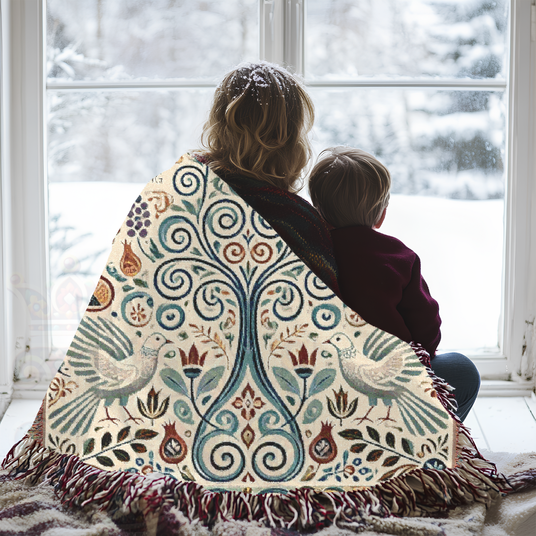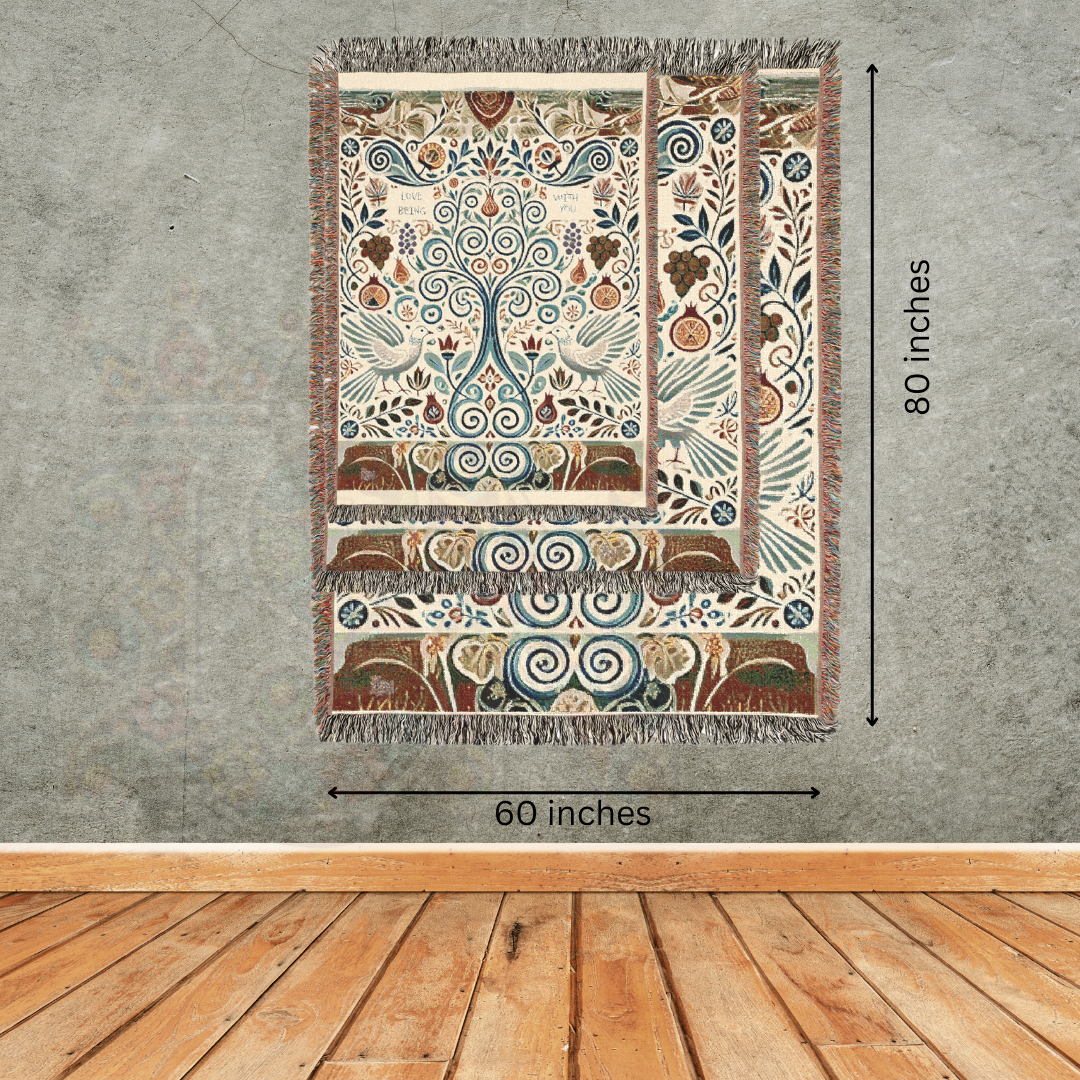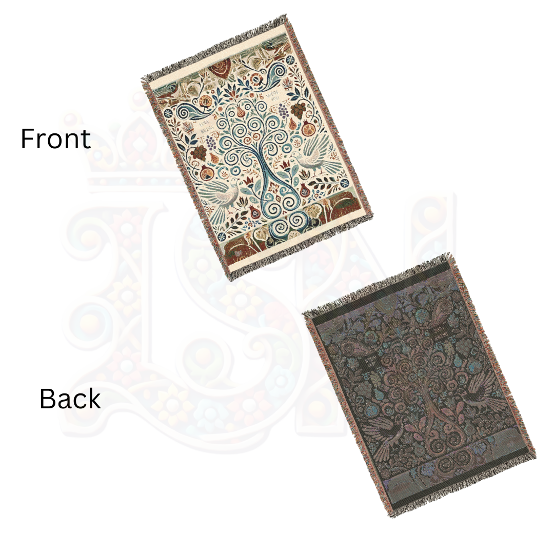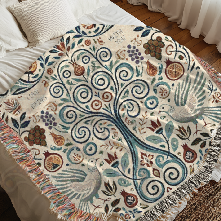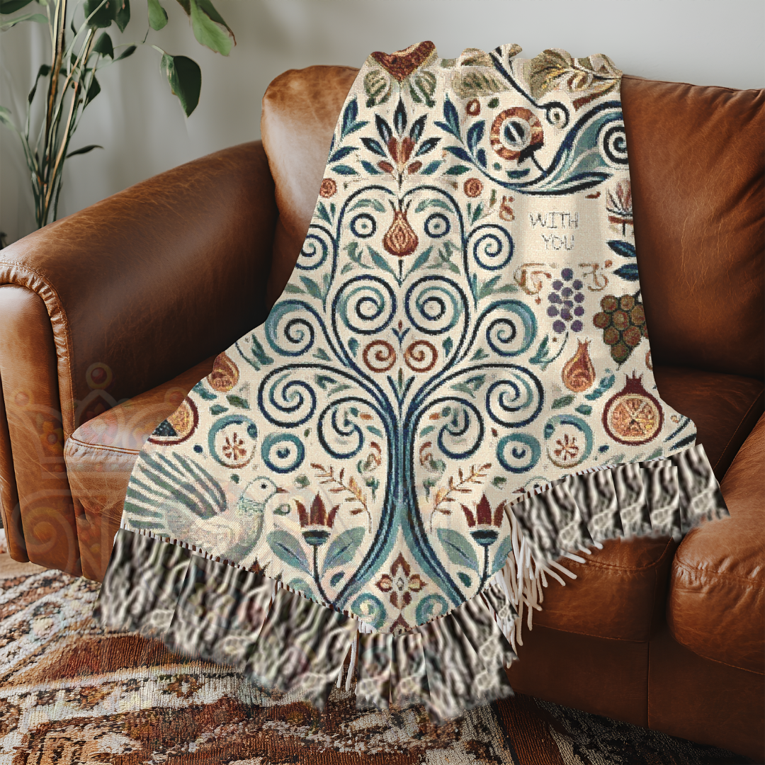 Inspired by ancient motifs found in Judaica, Nordic, and folk-art traditions, this versatile woven throw serves as a cozy blanket, meaningful gift, or stunning wall tapestry. Whether draped over a reading nook, bed, or displayed as art, this timeless piece brings a touch of sacred beauty and natural harmony to any space.