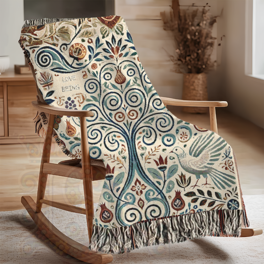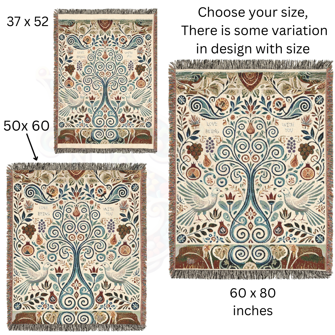 Tree of Life "Love being with you" Woven Blanket – 100% Cotton Tapestry Throw | Boho Home Decor | Birds, Nature & Blessings Design