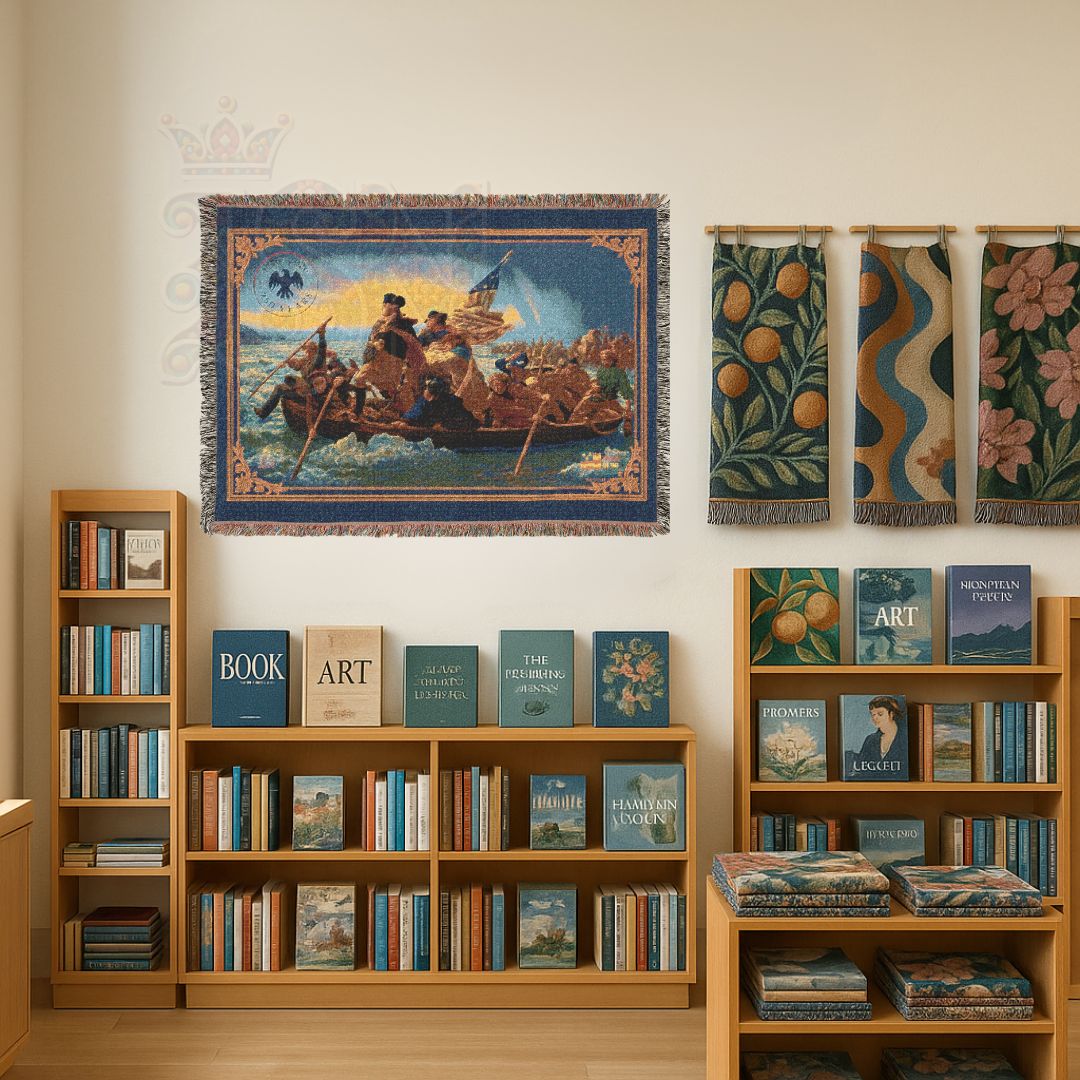 Inspired by the classic 1851 painting by Emanuel Leutze, this version blends traditional Americana with textured, woven artistry. A perfect gift for history buffs, veterans, educators, or anyone with deep national pride. Display it on a wall or fold it at the foot of a bed—it’s as much an art piece as it is a comforting heirloom. 🎁📚