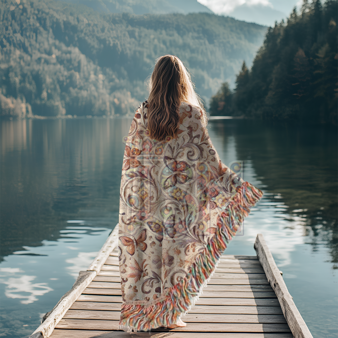 Whispers of Wings Butterfly Garden Woven Blanket – Elegant Folk Art Throw with Butterflies & Floral Motifs for Home & Gift